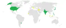En vert, les partis membres de l'alliance qui ont dirigé une coalition gouvernementale. En jaune, les partis membres de l'alliance qui ont fait partie d'un gouvernement de coalition sans le diriger (Juin 2012)