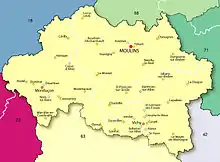 L’Allier (/a.lje/[Note 1]) est un département du centre de la France situé dans la région Auvergne-Rhône-Alpes. L’Insee et La Poste lui attribuent le code 03. Sa préfecture est Moulins.