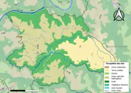 L'occupation des sols de la commune, telle qu'elle ressort de la base de données européenne d’occupation biophysique des sols Corine Land Cover (CLC), est marquée par l'importance des territoires agricoles (61 % en 2018), en augmentation par rapport à 1990 (60,2 %). La répartition détaillée en 2018 est la suivante : forêts (39 %), zones agricoles hétérogènes (38,5 %), terres arables (22,5 %)[22].