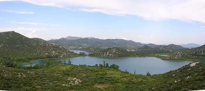Les montagnes de haute Herzégovine sont géomorphologiquement dans le prolongement des montagnes karstiques de Bosnie occidentale, avec de larges poljés et d'imposants massifs montagneux. Elles s'organisent autour de la moyenne et haute vallée de la Neretva. Le groupe de la Čvrsnica est situé sur la rive droite du fleuve, au nord-ouest de Mostar et à l'est du lac de Buško et du poljé de Duvno. Il culmine à 2 228 mètres d'altitude au Pločno, le pic principal de la Čvrsnica. Un autre sommet important est le Veliki Vran, à 2 074 mètres[4]. Le massif de Prenj est blotti dans le coude formé par la moyenne vallée de la Neretva au niveau du lac de Jablanica et de la ville de Konjic, au nord. Il possède pas moins de onze sommets de plus de 2 000 mètres, le plus haut étant le Zelena glava (2 115 mètres). Le groupe du Velez se situe au sud-est de Mostar et au nord des poljés de Dabar et de Fatnica. Il approche les 2 000 mètres d'altitude au pic Botin (1 969 m)[7]. Le Lebrsnik culmine à 1 985 mètres d'altitude au pic Orlovaca et domine de quelques dizaines de mètres le Crvanj (1 920 mètres au pic Zimomor, la « colline au crépuscule d'hiver »), une montagne entourée du poljé de Nevesinj au sud et de la vallée de la Neretva au nord et au nord-est[8].