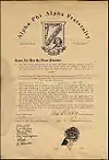 « Que Dieu accorde, que de cette assemblée, de cette noble assemblée d'hommes de la fraternité, certains dirigeants de notre nation émergeront --Martin Luther King, Jr., (Discours adressé à ΑΦΑ au Jubilé d'Or)[36] »