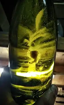 Le « goût de lumière » est dû à un ensemble de molécules, qui apparaissent dans le temps. Le défaut apparaît sur des vins ayant une présence de riboflavine (Vitamine B2) supérieure à 100 µg/L (teneur dans le vin 30 à 170 μg/L[32]), et qui ont subi une exposition à la lumière, favorisée par des températures supérieures à 20 °C[33].
