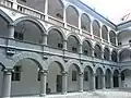 Il a été construit par l'architecte de la cour Wilhelm Egkl en 1563. Plus tard, il a servi de Monnaie. La cour intérieure a gardé ses arcades renaissance, tandis que la façade ouest a été réaménagée dans un style néoclassique en 1809. Enfin, la façade nord a reçu son décor néogothique lors de la construction de la Maximilianstrasse afin de l'adapter au concept de cette avenue royale. Une arche au sud relie le bâtiment au château Alter Hof.