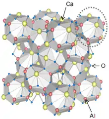 - l'hepta-aluminate de dodéca-calcium, 12CaO·7Al2O3 (C12A7) (mayenite) ;