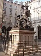 Amédée VI combat également les marquis de Salucces et de Montferrat et parvient aussi à neutraliser la Famille Visconti de Milan, entre 1360 et 1363. Il remporte avec le comte de Genève, son ami, Aymon III, une victoire contre Frédéric II de Saluces[8]. Ce dernier rendra hommage au Dauphin de France pour le marquisat.