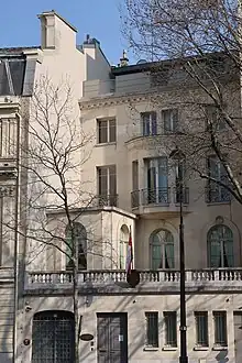 Le drapeau d'Oman flotte à l'entrée de l'ambassade omanaise à Paris. | |