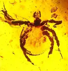 L'ambre birman a permis d'identifier cinq familles de parasitiformes : Argasidae, † Deinocrotonidae, Ixodidae, Opilioacaridae et Polyaspididae .