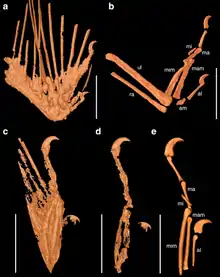 - (en) Xing, McKellar et O'Connor, « An unusually large bird wing in mid-Cretaceous Burmese amber », Cretaceous Research, vol. 110, , p. 104412 (DOI 10.1016/j.cretres.2020.104412)
