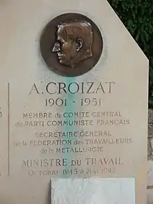 Ambroise Croizat, né le à Notre-Dame-de-Briançon (Savoie) et mort le à Suresnes (Hauts-de-Seine), est un syndicaliste et homme politique français, membre du Parti communiste français (PCF) et fondateur de la Sécurité sociale.