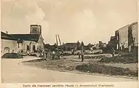 Monument aux morts. Au fond : calvaire à côté de l'église.