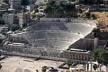 Derrière l'emplacement de l'ancien forum se trouve le théâtre romain, le plus grand de Jordanie, avec 6 000 places. Il aurait été construit entre 138 et 161 apr. J.-C. par l'empereur Antonin le Pieux ; il s'adosse au flanc d'une colline et est toujours utilisé pour des spectacles.