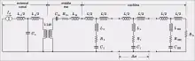 La partie cochléaire du circuit utilise une analyse par éléments finis de la ligne de transmission continue du conduit cochléaire. Une représentation idéale d'une telle structure utiliserait des éléments infinitésimaux, et il y en aurait donc un nombre infini. Dans ce modèle, la cochlée est divisée en 350 sections et chaque section est modélisée à l'aide d'un petit nombre d'éléments groupés[17].