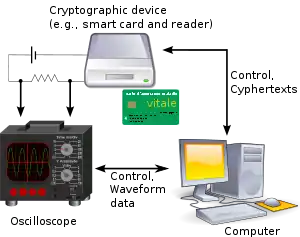 L'analyse de consommation consiste (simplement) en la mesure du courant consommé par un circuit électronique pour en déduire les opérations effectuées. Chaque instruction réalisée par un microprocesseur met en œuvre un certain nombre de transistors. À chaque instant, la mesure du courant consommé peut refléter l'activité du microprocesseur. Bien entendu, les courants consommés sont très faibles, leurs variations infimes et extrêmement rapides. Néanmoins, les instruments de mesure aujourd'hui utilisés permettent des mesures extrêmement fines, avec des résolutions inférieures au micro ampère et des fréquences d’échantillonnage jusqu'au gigahertz. La sécurité des cartes à puce (ou de tout autre matériel électronique) repose essentiellement sur des algorithmes de cryptographie connus: DES, 3-DES, RSA et bien d'autres.