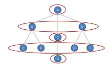 Dans l'image ci-contre, représentant une structure organisationnelle, A est au poste central, B, C et D répondent de A et agissent sur E, F et H, I ; G est isolé bien que répondant de C (et A). Bien que les acteurs B et D ne soient pas structurellement équivalents — ils ont le même répondant (A), mais pas les mêmes liens vers les autres —, ils semblent tout de même en équivalence. Les deux (B et D) répondent de A et sont en interaction avec deux entités (respectivement E F et H I). Si les sommets B et D étaient interchangés, ou encore, si on interchangeait E et H (ainsi que les autres combinaisons possibles) les distances entre les sommets dans le réseau resteraient exactement identiques. Il y a donc 5 classes d'équivalence automorphique dans ce graphe : , , , , et . Il est à noter qu'une définition moins stricte de cette équivalence réduit le nombre de classes[3].