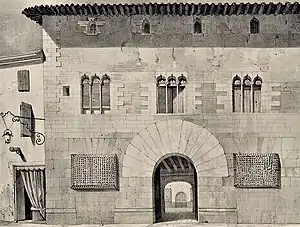 Les fenêtres trilobées[1] de colonnes avec des chapiteaux avec des motifs de feuillage et des façades sobres et symétriques, perforées de majestueuses portes semi-circulaires, sont d'une grande pureté, dans le style gothique. Les colonnettes d'une extrême minceur qui portent des linteaux ajourés en forme d'arc trilobés n'ont été possibles qu'en utilisant du calcaire nummulitique provenant de Monjuic, dans la province de Gérone, dans lequel on peut tailler des colonnes monolithes de plus de deux mètres de hauteur avec des diamètres inférieurs à dix centimètres et capables de reprendre des charges importantes[8].