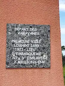 Selon l'historien Arsène Francoeur Nganga[20],[21], les différents sites de la rive droite du fleuve Congo, sont des étapes incontournables de la " Piste des esclaves ", avant de devenir " Piste des caravanes " pendant la colonisation française. Il s'agit du port marchand de Yoro, correspondant à l'ancien village d'Impila, du marché de Poumbou (village Mfoa) sur l'actuel emplacement de l'hôtel de ville de Brazzaville, de la rue Mbala Prosper, à proximité de la résidence du président de la république à Bacongo, le second arrondissement de Brazzaville, la borne commémorative devant le poste de sécurité publique (PSP) de Bacongo, et du marché de Ta Nkéoua (Nkéoua Joseph)[22][note 1].