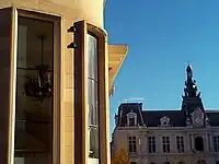 Une des particularités du théâtre municipal, c'est la manière dont le bâtiment dialogue avec son environnement urbain, à l'angle de la place principale de la ville.