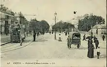 On voit ici trois tramways, dont les motrices 3 et 16.