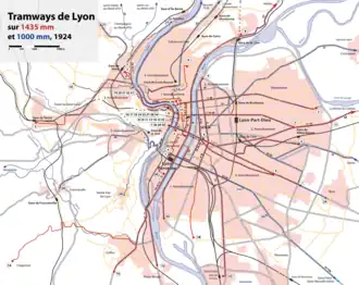 - Tramway de Lyon (réseau actuel depuis 2001).