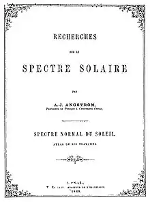 - Anders Jonas Angström, Recherches sur le spectre solaire : Spectre normal du soleil, Uppsala, Schultz, , 42 + XV pages de tableaux (lire en ligne), p. 31-32