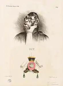 Le , il devient président de la Chambre des députés. Il est réélu huit fois consécutives jusqu'au . Il reste légendaire, comme président, par son penchant marqué au sarcasme et aux réparties mordantes qu'il ne pouvait contenir et qui lui attirent de nombreuses inimitiés. Il ne cesse d'ailleurs de se mêler personnellement aux débats parlementaires. Foncièrement anticlérical, il descend du fauteuil lors de la discussion du projet de loi sur les conseils généraux pour appuyer un amendement interdisant aux prêtres d'en faire partie[11]. Dans la session de 1833, il demanda, à l'occasion de la discussion du budget de la justice, que le traitement des procureurs généraux fût augmenté[note 14]. Le , à l'occasion de la crise ministérielle, il prononça un discours qui eut un certain retentissement. En 1835, il prit la parole sur les lois de septembre. En 1836 et 1837, il appuya le maintien des lois répressives de l'usure, défendit les députés fonctionnaires du reproche de servilité, blâma les ministres d'avoir arrêté le cours de la justice dans la tentative manquée de soulèvement de Strasbourg du prince Louis-Napoléon Bonaparte, et combattit la loi de disjonction. En 1839, il déclara, dans la commission de l'adresse, le ministère Molé « insuffisant » pour couvrir la royauté et réclama la liberté des deux Bosphores, le détroit des Dardanelles et l'isthme de Suez. En 1840, il exprime l'opinion que l'occupation de l'Algérie devait être restreinte et vote contre la conversion des rentes. Dans la même session, pressé par la famille royale de soutenir à la Chambre la demande de dotation pour le duc de Nemours, il se déroba habilement. En 1841, il fait d'importants discours sur la propriété littéraire, le recrutement de l'armée, la loi de finances. En 1842, il rapporte le projet de loi sur l'organisation de la régence. Partisan décidé du remplacement militaire, il en soutient l'utilité contre l'opposition de gauche (1844) et s'oppose à la proposition Rémusat relative aux députés exerçant des fonctions salariées (1845), ainsi qu'à la proposition Duvergier de Hauranne relative à l'abolition du scrutin secret (1845). En 1846, il fait partie de la commission chargée d'examiner les questions que soulevait la concentration, dans les mains d'une seule compagnie, du bassin houiller de la Loire. Dans ces diverses sessions, Dupin se mêle souvent, en outre, à la discussion du projet d'adresse. Tout en se déclarant absolument favorable au gouvernement, il ne manque pas de poursuivre les ministres de ses sarcasmes.