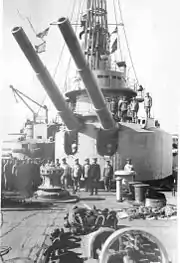 Le cuirassé André l'Apôtre ancré dans le port de Revel lors de la campagne de 1912 | |