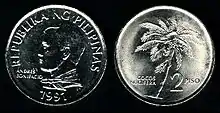 Pièce de 2 pesos philippins à l'effigie d'Andrès Bonifacio.