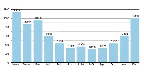 Le module de la rivière à Saint-Gervais-de-Vic est de 0,610 m3/s.