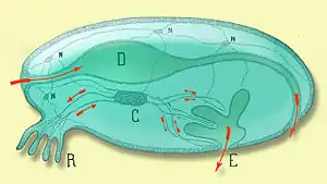 Les cellules animales sont hétérotrophes, c'est-à-dire qu'elles doivent manger pour survivre, contrairement aux plantes. Le mode de nutrition est souvent une caractéristique contraignante pour les animaux. La stratégie des éponges consiste à filtrer l'eau qui les traverse, pour y capturer des proies et particules.