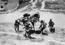 Sur le front italien des Alpes, l'armée italienne emploie 3 500 chiens, principalement des saint-bernards, à transporter des approvisionnements par traîneau[10].