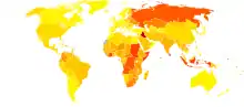 Sur le plan sanitaire, une grande partie de la population mondiale reste dans des conditions très précaires, sans accès à l'eau potable ou à l'assainissement et avec une malnutrition ou une dénutrition fréquentes[9]. En 2008, 35 pays sont concernés par des émeutes de la faim[10] (Crise alimentaire mondiale de 2007-2008). Les allergies et l'asthme se développent.