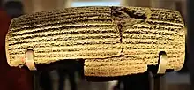 Le cylindre de Cyrus relatif aux événements qui suivent la prise de Babylone, British Museum.