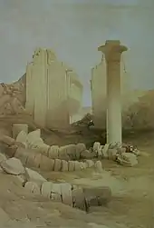 Colonne de Taharqa, dans le temple de Karnak. Aquarelle de David Roberts, 1838.