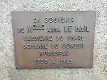 Anna Le Bail s'investit dans la commune de Saint Philibert en exerçant comme crieur public, chargée à la sortie des messes dominicales d'annoncer les informations municipales. Elle siège au conseil municipal à partir de 1945, en devient la doyenne jusqu'à sa mort en 1965[5]. Le le maire de Saint-Philibert lui remet la médaille d’honneur des Travaux Publics en présence du député de région, du sous-préfet de Lorient, du recteur de la paroisse, de l'adjoint au maire de Lorient et du conseil municipal au grand complet.