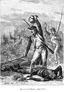 Les républicains ayant été instruits qu'il se trouverait le dans son château de Villehemet, une compagnie de grenadiers marcha pour l'y surprendre. Il devait en effet se marier dans la nuit du 16 au . Il fut trahi par un jeune homme qu'il avait recueilli. Boishardy s'aperçut trop tard de la trahison ; il voulut fuir et confia mademoiselle de Kercadio à deux compagnons d'armes, l'aubergiste Jacques Villemain et l'officier Louis Joseph Hervé du Lorin, en leur donnant rendez-vous au château de Boscénit dans la commune de Saint-Gilles-du-Méné. Les grenadiers le poursuivirent à coups de fusil ; il fut atteint et achevé à coups de sabre par deux soldats sur la route de Bréhand à Moncontour, près de la chapelle Saint-Malo[Note 5] en présence de Joséphine Quentin de Kercadio. Sa tête décapitée fut promenée dans les rues de Lamballe et de Moncontour puis jetée dans l'étang de Launay. Les deux assassins seront très légèrement punis. Plus tard, l'étang fut asséché et le crâne de Boishardy retrouvé ; il repose désormais au cimetière de Maroué.
