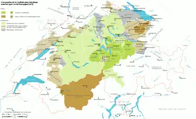 Les Confédérés suisses ont acquis leur indépendance. Mais ils entretiennent des rapports tendus avec la maison de Habsbourg. Dans ce contexte, Sigismond, archiduc d'Autriche, fait alliance en 1469 avec Charles le Téméraire, duc de Bourgogne : par le traité de Saint-Omer il lui vend, avec droit de rachat, des territoires de Haute-Alsace et de Forêt-Noire, ce qui fait de Charles un voisin immédiat des cantons suisses[8]. Charles nomme pour ces territoires un bailli, Pierre de Hagenbach, qui prend des mesures nuisant au commerce entre les villes rhénanes et suisses[9].
