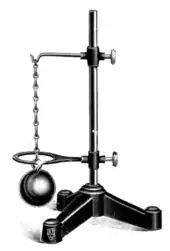 Pour éviter de perdre la boule lorsqu'elle tombe, le trépied peut être conçu de manière à l'accueillir dans sa partie inférieure[6], ou bien la boule peut être montée sur un bras également tenu par l'expérimentateur[5] ; ou encore la boule peut être attachée au sommet de la potence ou au bras tenant l'anneau[7],[8] par un fil ou une chaînette lâche, qui se tend pour la retenir au moment de la chute. Cette attache peut également servir à suspendre la boule au-dessus de la flamme pendant la phase de chauffage, puis à la déposer sur l'anneau — fonctions qui peuvent cependant être assurées par une baguette munie d'un crochet[6].