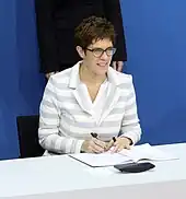 Annegret Kramp-Karrenbauer [ˈʔanəɡʁeːt ˈkʁamp ˈkaʁənˌbaʊ̯ɐ][1], née Kramp le à Völklingen, dite AKK [aːkaːkaː][1], est une femme politique allemande. Elle est membre de l'Union chrétienne-démocrate d'Allemagne (CDU), dont elle est présidente fédérale entre 2018 et 2021.