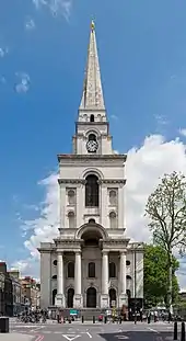 - Christ Church (en), l'église de Spitalfields, construite par l'architecte Nicholas Hawksmoor, et livrée en 1729.