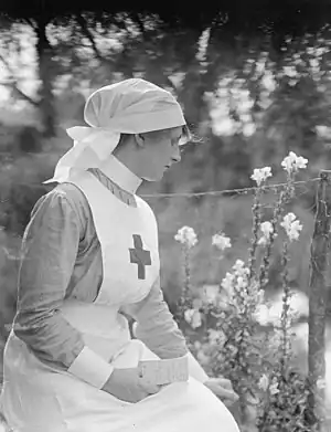 Au début de la Première Guerre mondiale en 1914, trois ans avant que les États-Unis n'entrent en guerre, Tinker se rend en Europe comme bénévole auprès de Croix-Rouge britannique (en). Elle y sert comme infirmière, travaillant sur les lignes de front en Belgique, en France et en Italie [6]. Elle a été en charge d'un hôpital à Ostende, en Belgique qui est envahi par des soldats allemands alors qu'elle en est la directrice [1] Après la mort inattendue de son père en 1915, elle rentre chez elle pour ses funérailles, puis retourne en Europe pour servir jusqu'à la fin de la guerre [7].