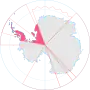L'Antarctique couvre une superficie de plus de 14 000 000 km2, ce qui en fait le quatrième plus grand continent avec une surface environ 1,3 fois plus grande que celle de l'Europe[40]. En hiver, le continent antarctique double sa superficie par une banquise qui le prolonge jusqu'à près de 800 km du rivage et des glaces flottantes allant jusqu'à 800 km des côtes[41].