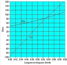 Mais ce n'est pas suffisant pour caractériser l'impédance du dipôle qui comporte aussi une partie imaginaire. Le plus simple c'est de la mesurer. Dans l'image de droite on trouve les parties réelle et imaginaire de l'impédance pour des longueurs de dipôle qui vont de à .