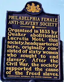 La Philadelphia female anti-slavery society (PFASS) est établie par la quaker Lucretia Mott en décembre 1833 dans les jours qui suivent la fondation de l’American anti-slavery society (AASS). Les femmes sont en effet admises au sein de l’AASS mais on leur interdit de prendre part aux décisions ou aux votes, plus encore d’occuper des fonctions de direction. La prise de parole publique des femmes s’impose comme l’une des revendications des militantes.