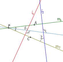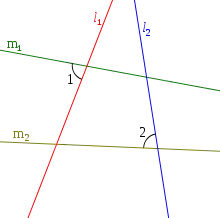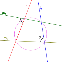 Étant donné deux droites et , les droites et sont dites anti-parallèles par rapport à et si sur dans la figure 1. De plus, si et sont anti-parallèles par rapport à et , alors et sont également anti-parallèles par rapport à et .