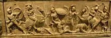 - des sources iconographiques, des images, ce qui rejoint le champ de l'histoire de l'art ; l'analyse des images peut être mobilisée pour mieux comprendre de nombreux domaines des civilisations anciennes (religion, politique, etc.)[34],[35].