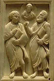 En Occident, le pouvoir spirituel s’engage vers une autonomie plus grande face au pouvoir politique. Ambroise pose les bases de la théorie médiévale de la séparation des deux pouvoirs[55], esquissant même l’idée d’une subordination du pouvoir politique au pouvoir spirituel. Il contraint ainsi Théodose à faire pénitence et à marcher pieds nus dans la cendre pour expier le massacre de dix mille personnes après la révolte de Thessalonique en 390[53]. En Orient, les empereurs oscillent entre césaropapisme et subordination au pouvoir spirituel. Ainsi, en 450, l’empereur Marcien est couronné empereur par l’évêque de Constantinople Anatolius. Son successeur Léon fait de même. C’est donc l’évêque qui au nom de Dieu fait le souverain. Une des conséquences de cette idéologie est la soumission du roi aux dogmes de l’Église. Les empereurs ne renoncent cependant pas à intervenir dans les affaires de l’Église. Zénon publie en 482 l’édit de l'Henotikon, de nature doctrinale, qui vise à apaiser les conflits religieux sur la nature du Christ. Cette volonté du souverain de dire le dogme soulève une opposition en Orient comme en Occident[56]. Justinien, au VIe siècle, va jusqu’à enlever et séquestrer pendant sept ans le pape Vigile pour l’obliger à souscrire aux positions défendues par le IIe concile de Constantinople condamnant le monophysisme. Constant II en 653 fait appréhender et juger le pape Martin Ier, et Justinien II tente la même action contre Serge Ier en 692 pour imposer les canons du concile in Trullo. Mais cette fois, les milices romaines défendirent le pape.