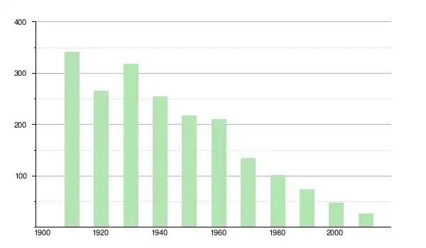 | 1950 | 217 | ▼ −14,57 % | |
