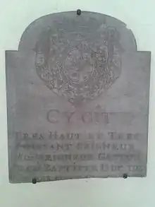 Armes de son père, Gaston Jean Baptiste duc de Roquelaure, telles que représentées sur sa pierre tombale (conservée au Musée de l’École vétérinaire de Maisons-Alfort). |