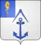 D'argent à une ancre surmonté d'un compas ouvert vers la pointe, le tout d'azur ; au canton des Comtes Sénateurs brochant[1]. Livrées : blanc, bleu. |