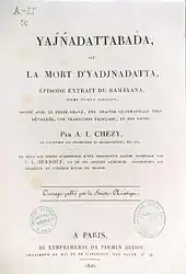 - Yadjnadatta-badha, ou la Mort d'Yadjnadatta, épisode extrait et traduit du Râmâyana, poème épique sanskrit (1814)